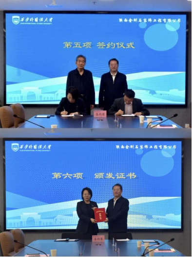 刘振涛在总结讲话中指出,此次捐赠是吴克敬先生文学情怀与陕西金刚石装饰工程有限公司社会责任的双向奔赴。学校将整合学科力量与资源,持续提供有力支持,希望以此中心捐赠为契机,紧扣“中国文化走出去”战略,聚焦高水平学术成果产出与学生传统文化教育,发挥外语优势,加强制度建设,整合校内外跨学科资源和力量,开展更多高水平系列讲座、工作坊及实践项目,打造具有国际影响力的文化交流平台,为国际化人才培养、文明互鉴与文化传承提供可持续的机制保障。