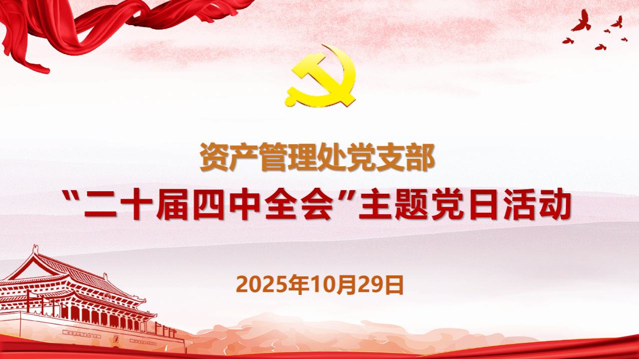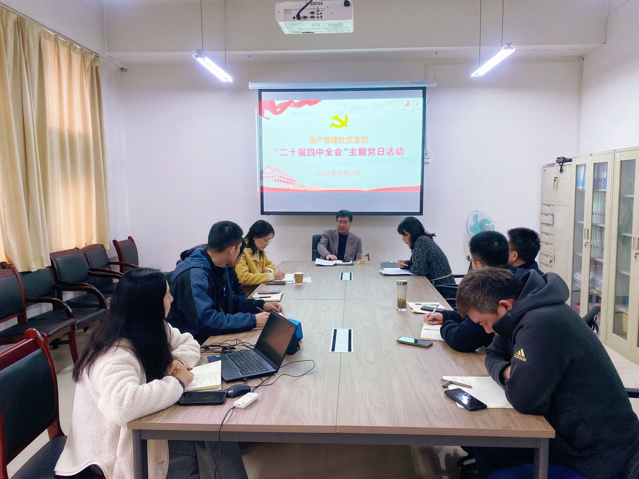 2025年10月29日下午,资产管理处党支部在校务楼B206室开展“学习党的二十届四中全会精神”主题党日活动。活动由党支部书记陈晓兵同志主持,全体党员参加。