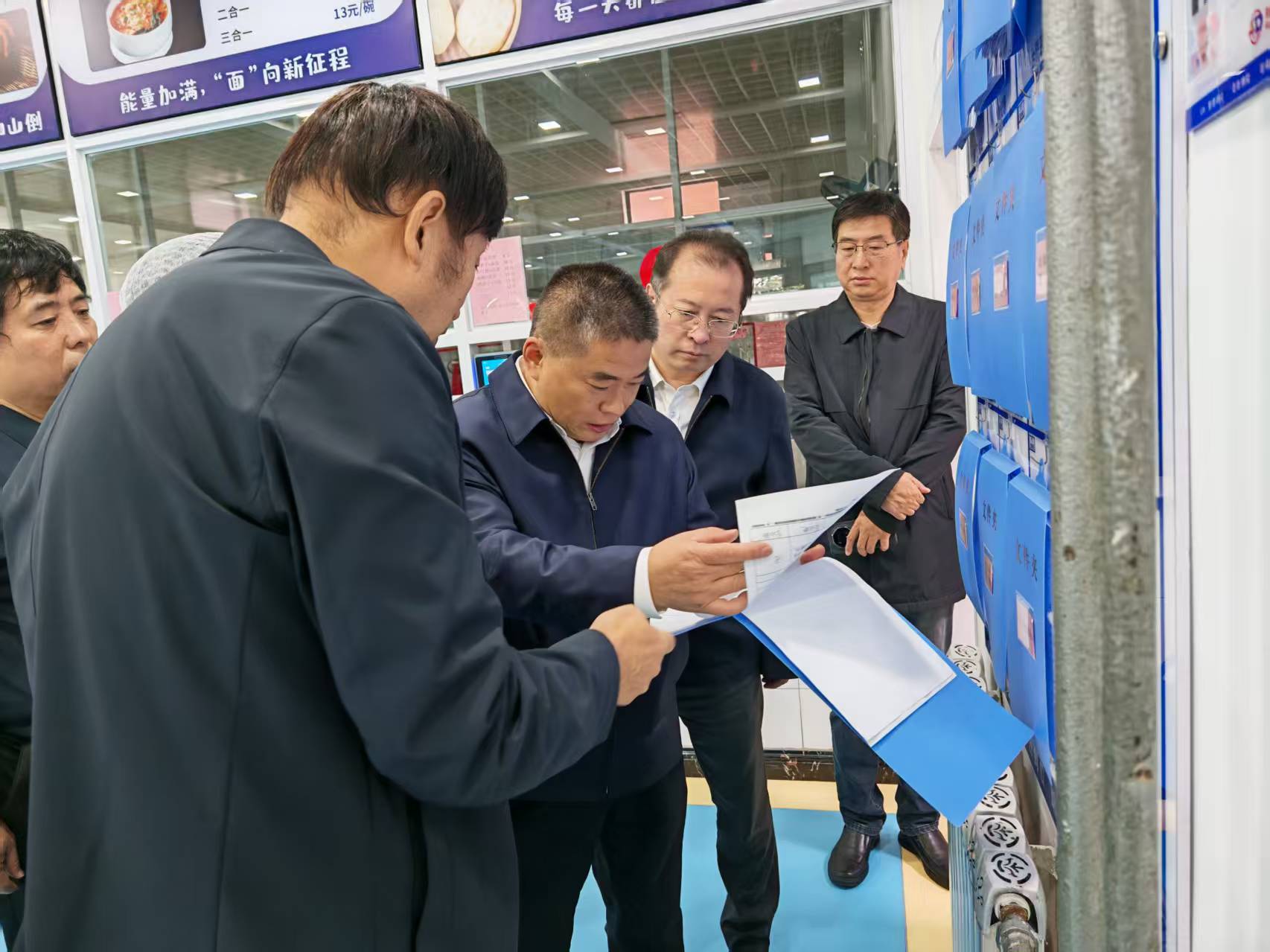 刘振涛一行深入到学生宿舍,现场查看了学生住宿条件、用电安全、消防设施、疏散通道,询问了宿舍管理人员的工作情况。在学生食堂从前厅和后厨逐一检查,从食材采购、饭菜价格、环境卫生、设备设施、食材加工、制度建设等方面了解情况。